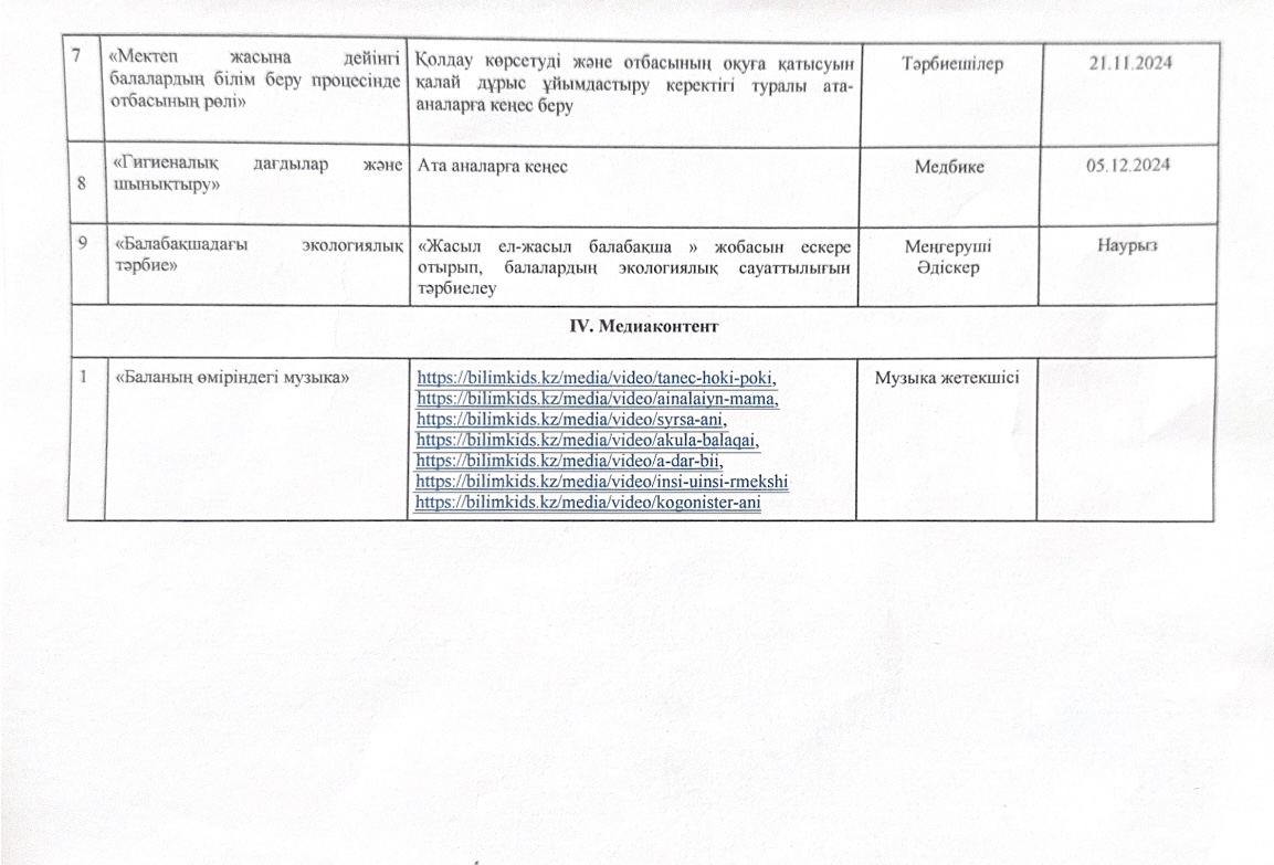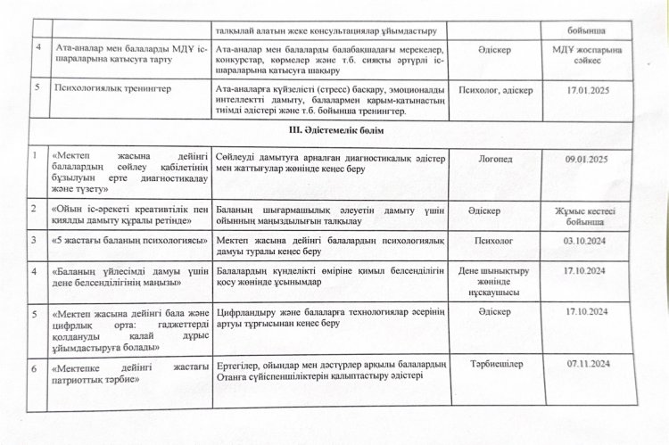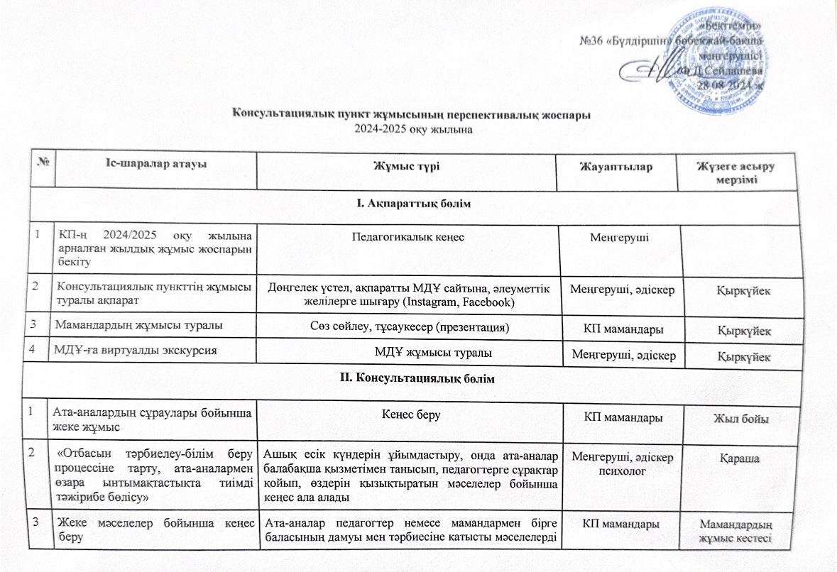 » » Консультациялық пункт жұмысының перспективалық жоспары 2024-2025 оқу жылы