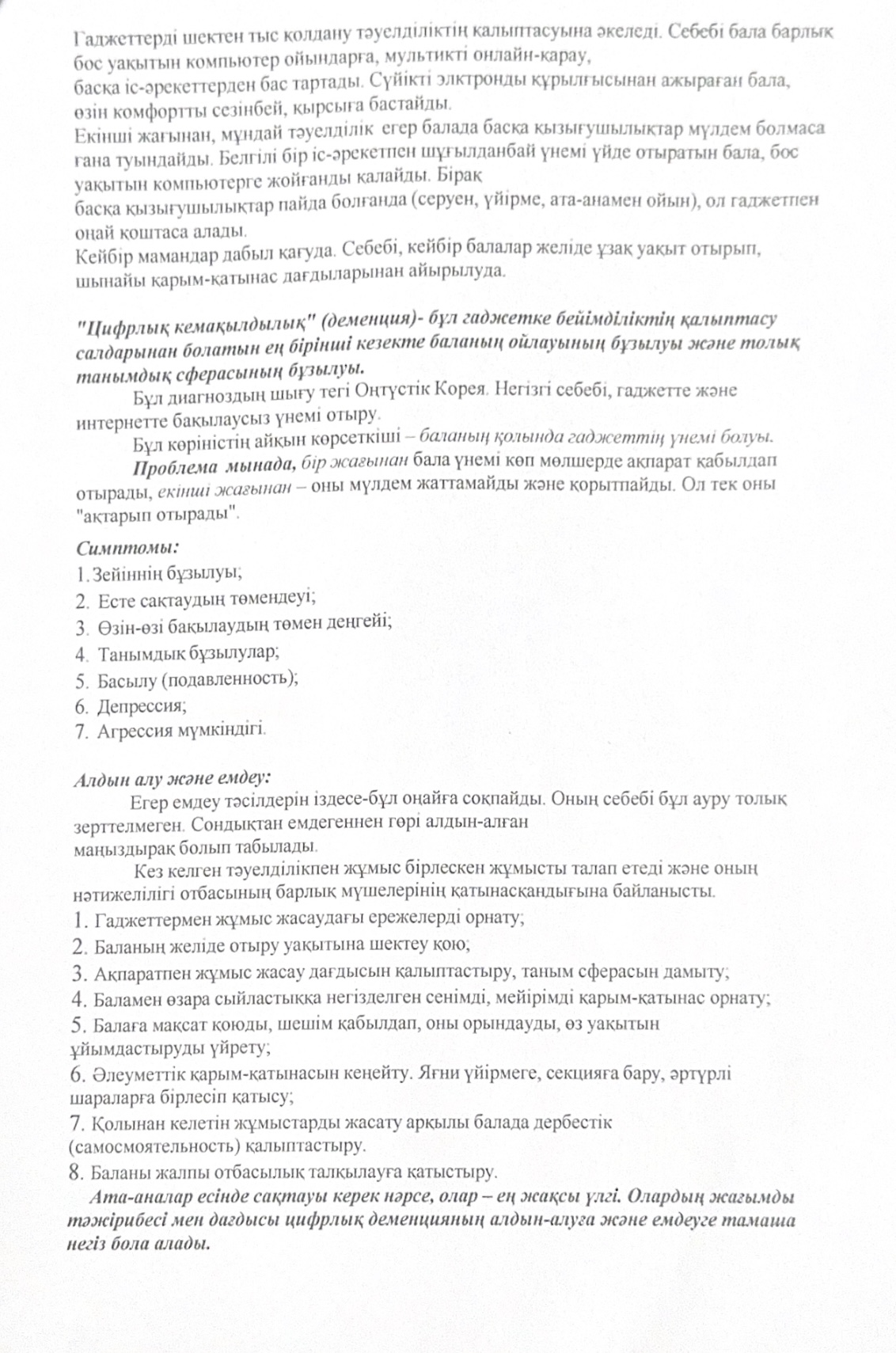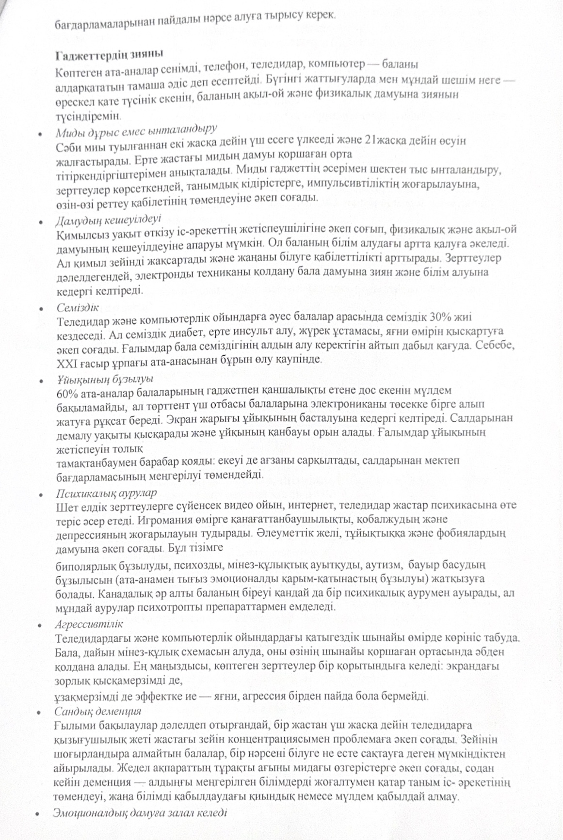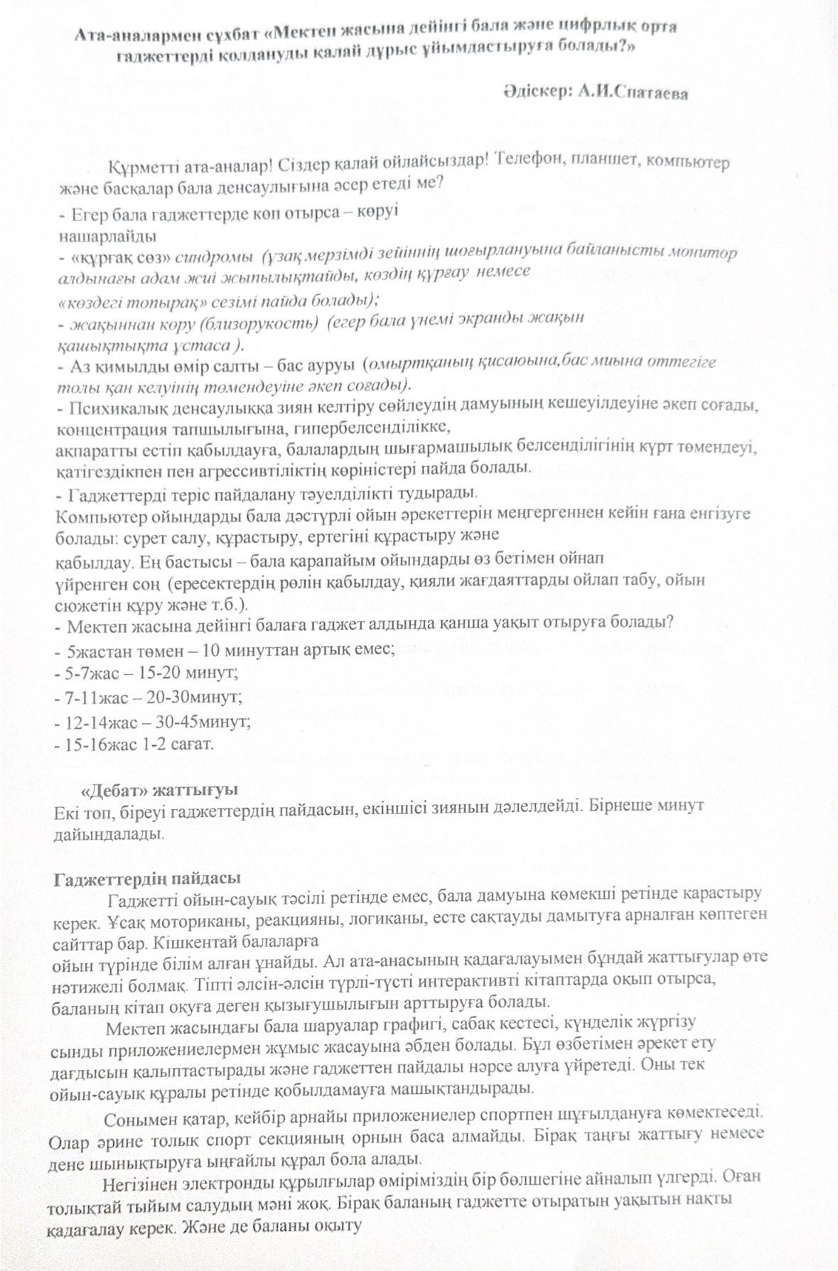 17 октябрь 2024 0 1 2 3 4 5 Ата-аналармен сұхбат "Мектеп жасына дейінгі бала және цифрлық орта гаджеттерді қолданылуды қалай дұрыс ұйымдастыруға болады?"